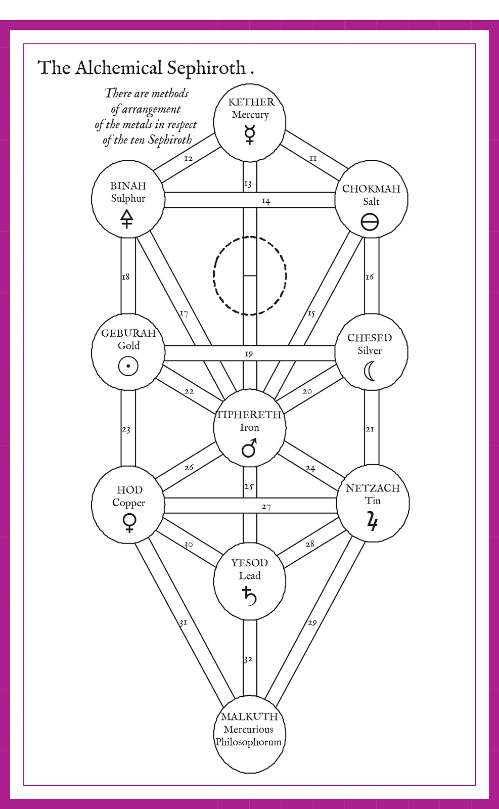The two diagrams actually show two stages of the great work, but it is not explained how this is useful. The Nisi document header seems to suggest that Mathers was trying to show how the different metals could be placed on the tree to show different things. However it doesn’t really do that either.